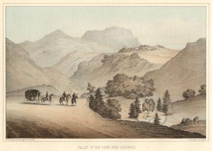 1. The two front Cypress trees in the area of the Tomb are 4cm from the ridge line in the foreground. You see the entire tree. The winding rood left of the trees is very faint.