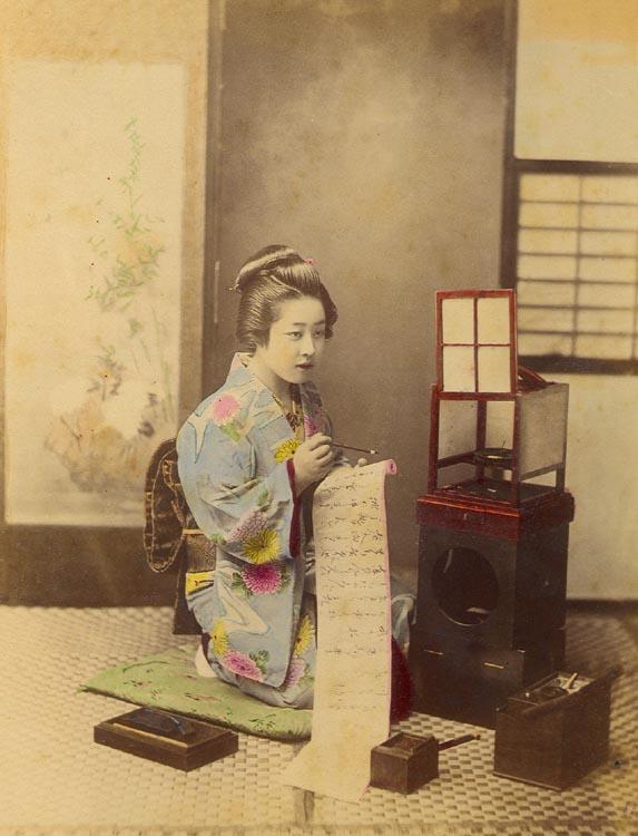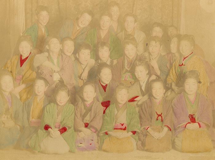 - Source of Color Albumen Photographs. Terry Bennett, in his book Early Japanese Images, identifies Kozaburo Tamamura as the source of the colored albumen photographs used in these book sets. He states that Tamamura provided 180,000 photographs to a dealer in Boston which were "undoubtedly" provided for the Brinkley books (see page 52). Tamamura was a famous photographer and serviced the tourist souvenir photograph trade in Japan as well as the export trade. It is clear that many of the photographs supplied were from his inventory. However, it is also clear that he used photographs taken by other famous Japanese photographers. Many of the albumen photographs were from Kazumasa Ogawa, who also provided the color flower collotypes for the books. Notice the similarity between the Brinkley color albumen photograph titled "A Tokyo Beauty" (Volume III, "De luxe" Edition) and a K. Ogawa collotype from Celebrated Geysha of Tokyo published ca 1892. For more information on the Geysha book, click here.