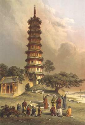 Note that on this print the title is spelled "Whampoa" Pagoda. The title is also found spelled "Wampoa" Pagoda with the "h" omitted. To see a lithograph where the "h" is omitted in the title, click here.