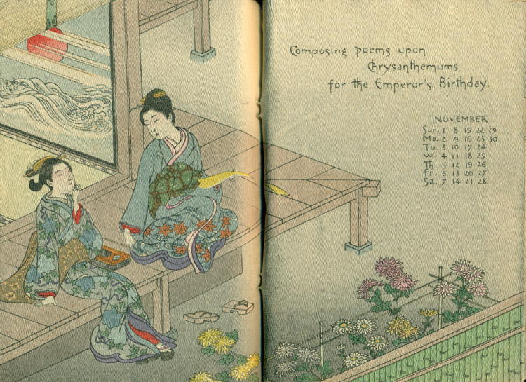 November - "Composing poems upon Chrysanthemums for the Emperor's Birthday."