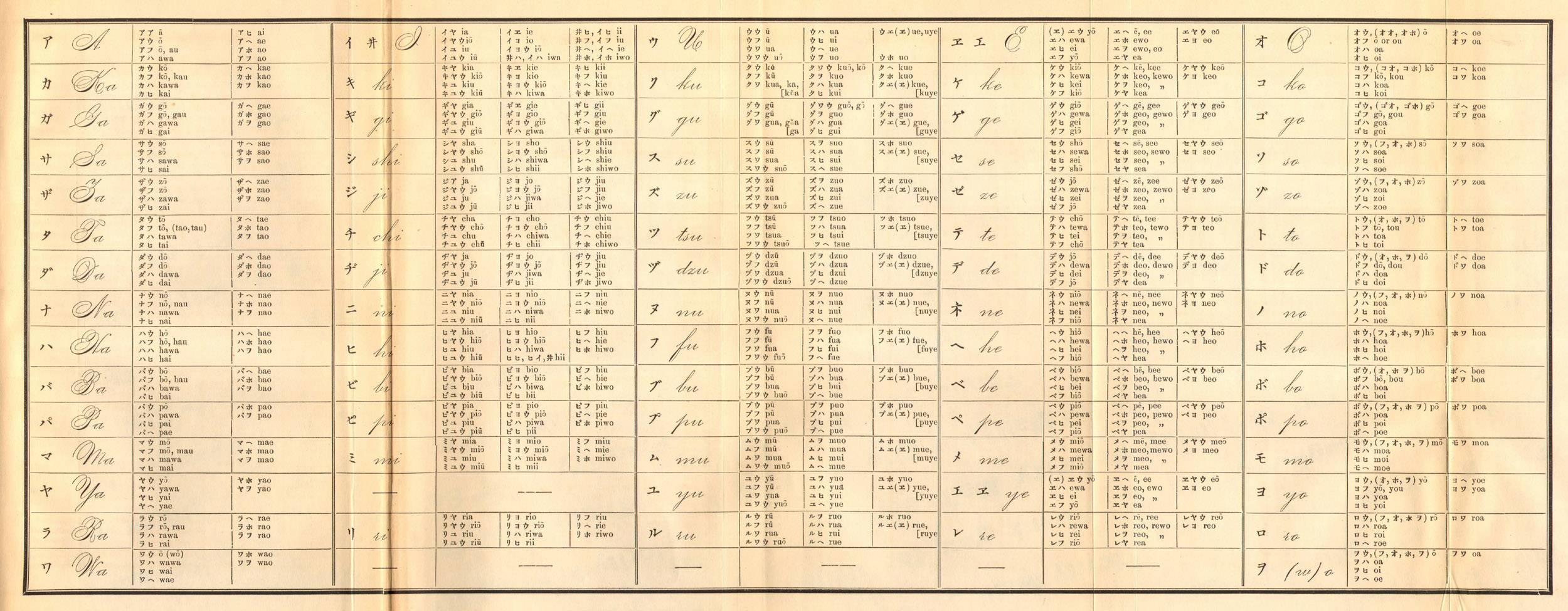 Volume I, No 11, November 1881, fold out (3 1/4 folds out), untitled table on writing Japanese