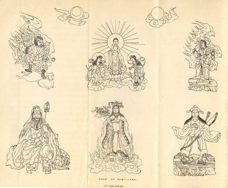 - Gods of Fusi-Jama (b&w lithograph, 2 folds out, facing page 145)