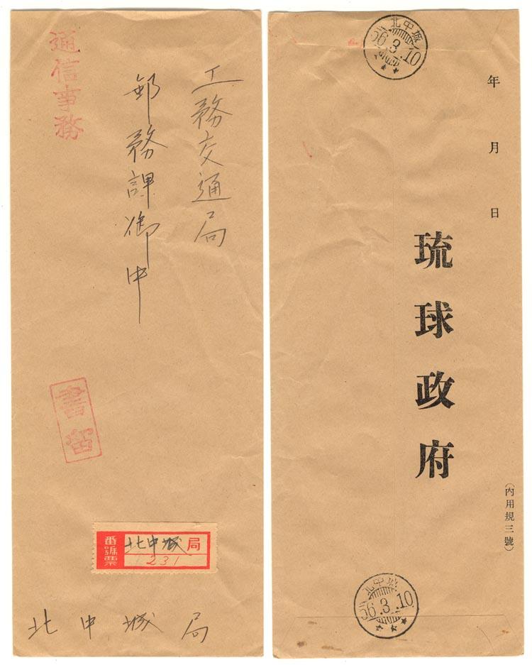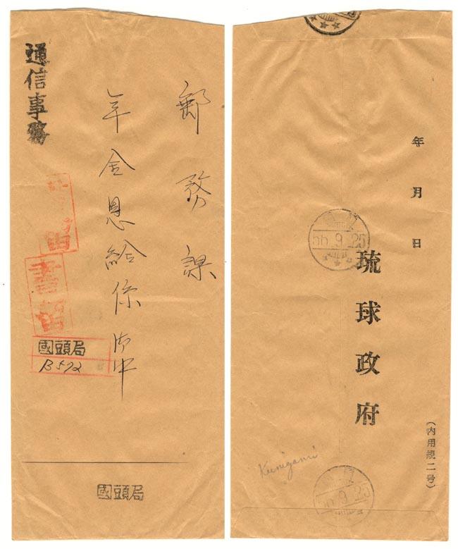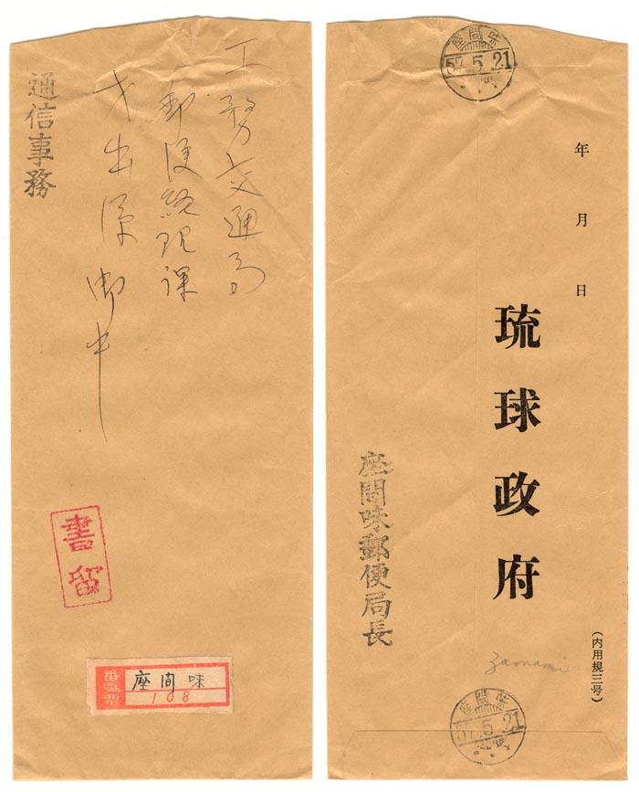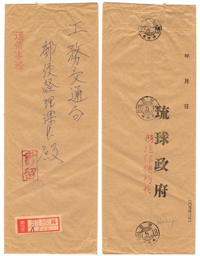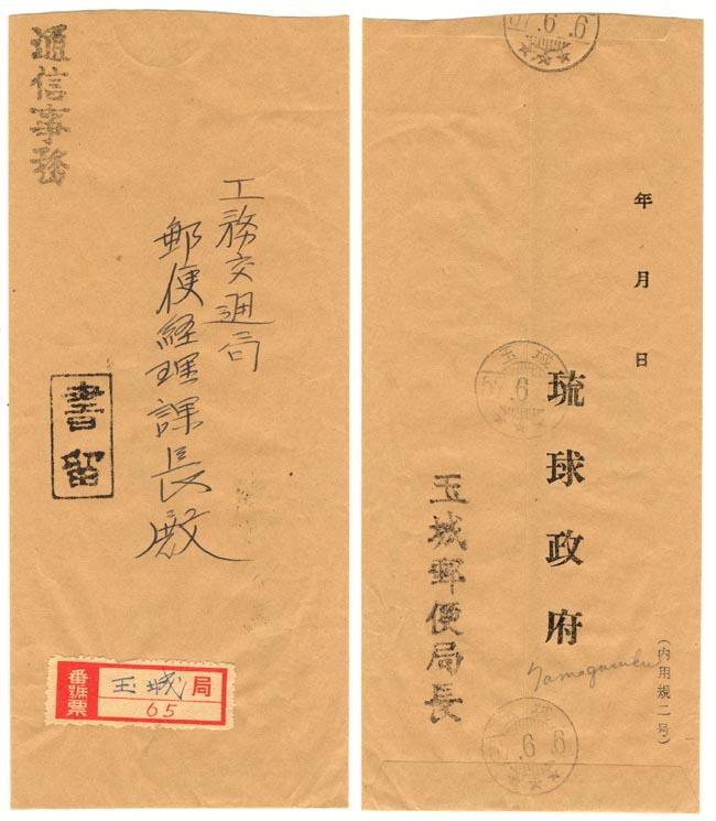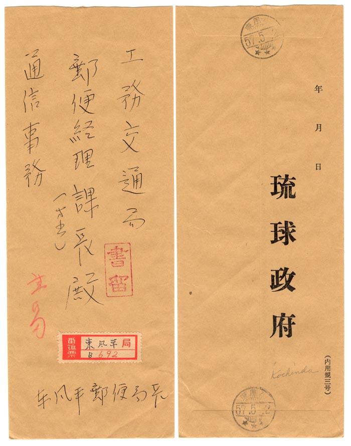 The basic envelope used for these covers is discussed in Volume 11, No 2 (July 15, 1979), pages 46-51 of From the Dragon's Den, the official publication of the Ryukyu Philatelic Specialist Society, LTD. The covers on this page are shown at Figure 3 and Figure 4 of the RPSS article.